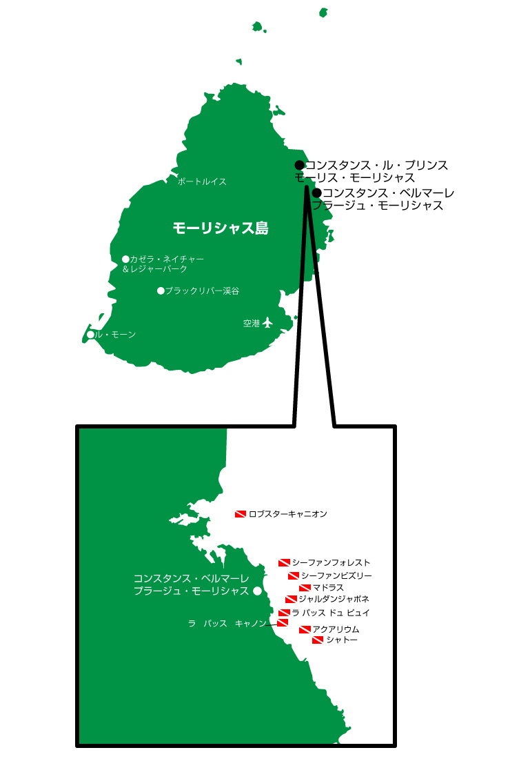 島の雰囲気同様、ダイビングスタイルも非常にゆったりしているモーリシャス。一般的に9時、11時に2本のダイビングを済ませ、午後はゆっくり過ごす(リクエストによって3ダイブ目も可能)。ある程度人数が揃えば、リクエスト次第で遠くのスポットへデイトリップに向かうこともあるが、多くのスポットは10~15分程度の距離に集中しています。