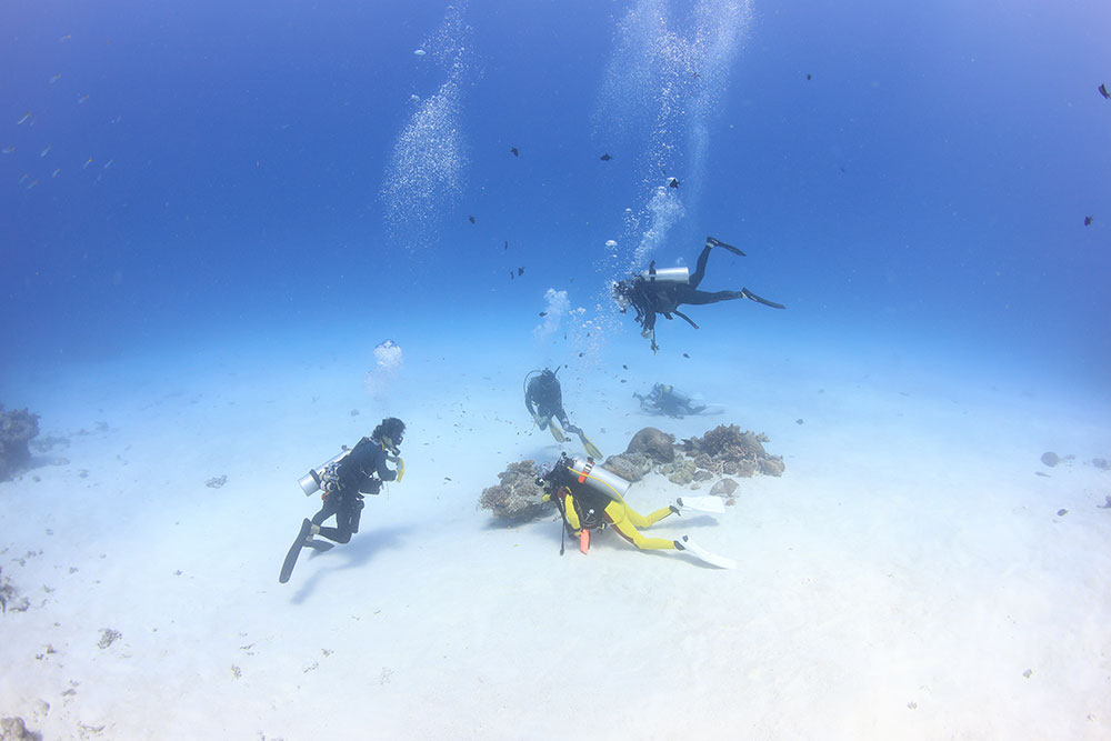 でもお昼に潜っても、こんな気持ち良い砂地が広がっていてね。