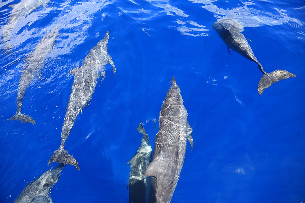 ボートキャプテンがサービス満点でイルカと遊んでくれたよ!