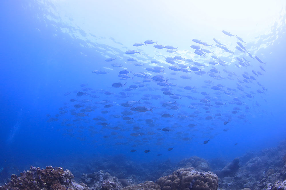 外洋側では、ギンガメアジなどの群れものがたくさん見れて、インサイドリーフに入ると