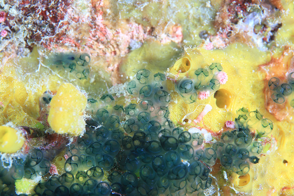 こんな可愛い笑いボヤが壁に群生し、ウミウシをたくさん見つけることができた。