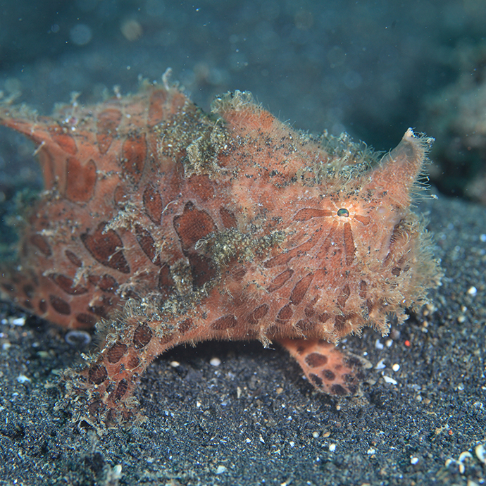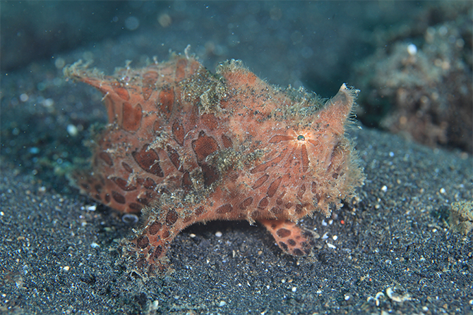 ポーカーフェイスのヘアリーフロッグフィッシュがエスカをふりふりして小さな魚をおびき寄せようとする姿は、自然界の厳しさを感じながら一方で、その一生懸命な姿にニマニマしてしまいます。