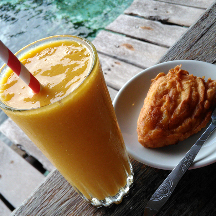 大人気のマンゴーシェイクと無料の手作りおやつを一緒に。