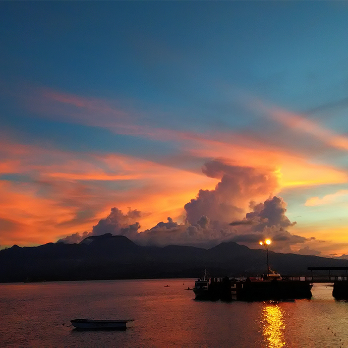 海だけでなく、陸も楽しいのがモアルボアル。ビーチ沿いには異国情緒溢れるレストランやカフェが立ち並びます。アフターダイブはみんなでお出かけ。海に沈む夕陽を眺めながら仲間と頂く美味しいディナーにみんなにまにま!!