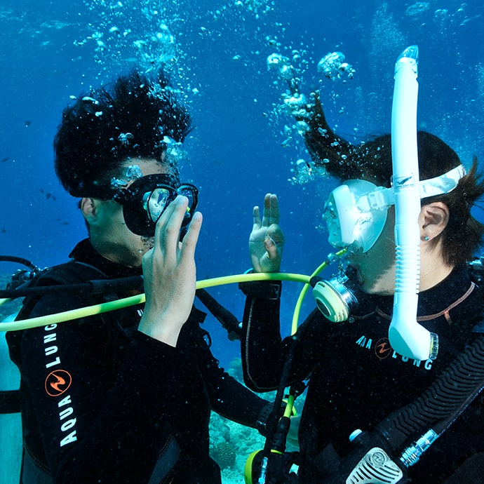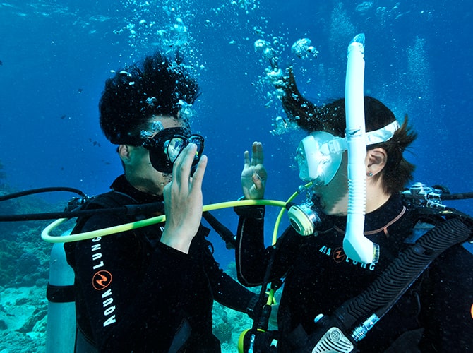 10円講習開催中!旅行代金+10円で友達をダイバーに誘っちゃおう!暖かくお魚いっぱいの綺麗な海で、お得にライセンス取得できちゃいます♪誘った人も誘われた人も、海の楽しさににまにまです♡