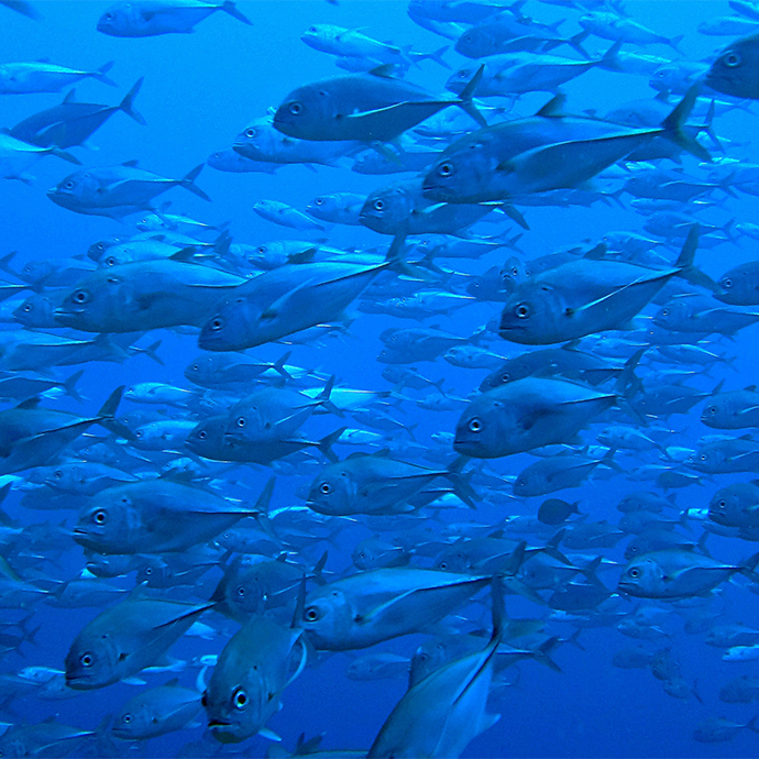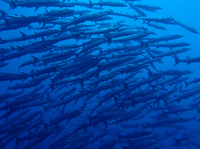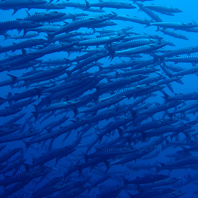 タオ島のダイブサイトで屈指の魚影の濃さを誇るセイルロックでは、ツバメウオの大群やギンガメアジの大群が高確率で見れます。