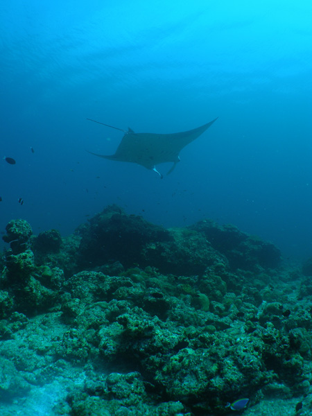 今度もみんなリーフにぴったり。マンタはゆっくりやって来てスレスレ頭上を通過して行った。