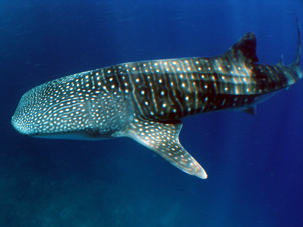2階の後部デッキから海を眺めているとくっきりはっきりジンベエ型のシルエットを発見。
