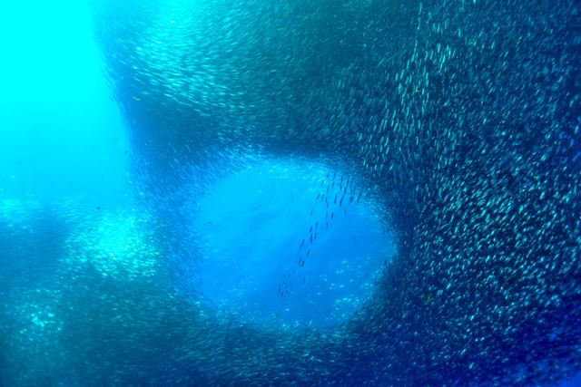 海一面のイワシの大群が、面白い形をとってくれたことに感謝です。