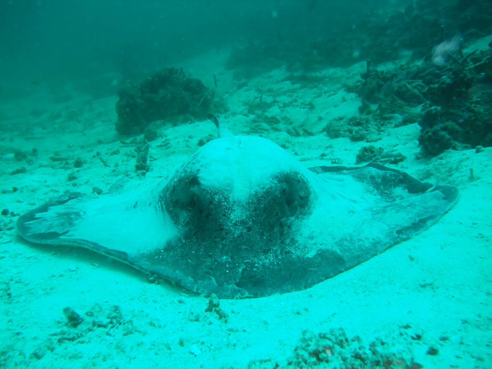マンタは少し早いスピードで通過、しかし、マダラトビエイが3枚こちらに向かってきて近くで見ることができました。