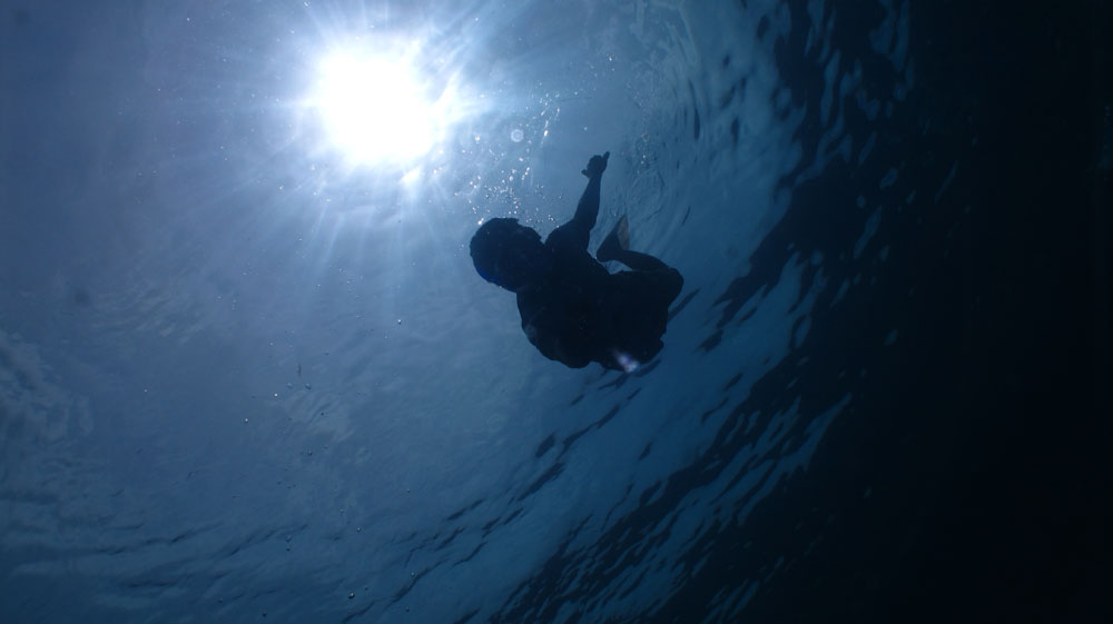 ダイビング開始30分ぐらいに的場君がカンカンカン!!みんなそっちに泳ぎますが全員見れず、そしたら次は重村チームの下に現れますがこれまた早くてみんなは見れず、もぅ終わりかなっと思っていると出ました。今度はゆっくりみんなのまわりをぐるっとまわって泳いでいきました。これは文句なしにみんな見ることができました。