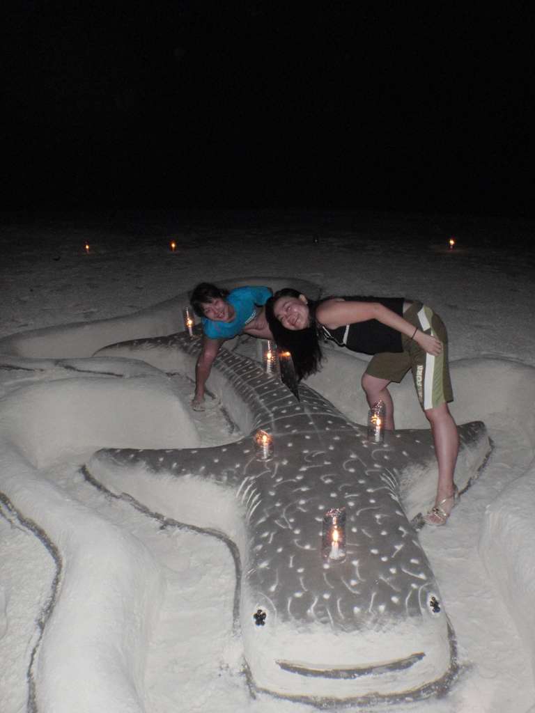 そして暗くなり始めた頃、再度無人島に上陸、ジンベエさんが綺麗にライトアップ🌙🌙