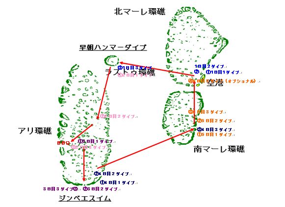 雨季・乾季またその時の海況によって回り方は変わるのですが、私の時の航海はこんな感じでまわりました♪
