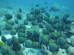 見られた生物:ギンガメアジ・ナポレオンフィッシュ・イソマグロ・コラーレバタフライフィッシュ・ムスジコショウダイ