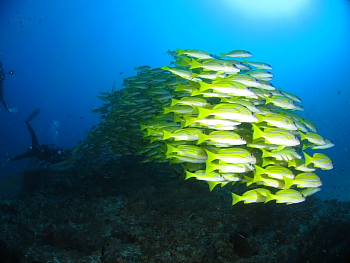 見られた生き物: バラクーダ  オオメカマス  イエローバックフュージュラー  グレイリーフシャーク  コクハンアラ  群生するテーブルサンゴ