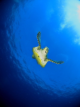 飛び込むと、約5mのジンベエが水面スレスレを優雅に泳いでいます。