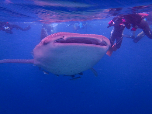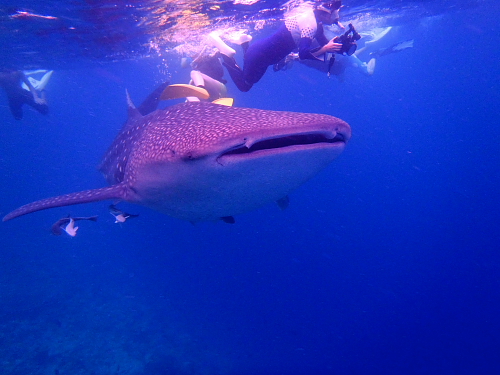 しかも、我々スノーケラーのあいだをぐるぐるするので、みんながゆっくり、全ての角度からジンベエを見つめることができました。