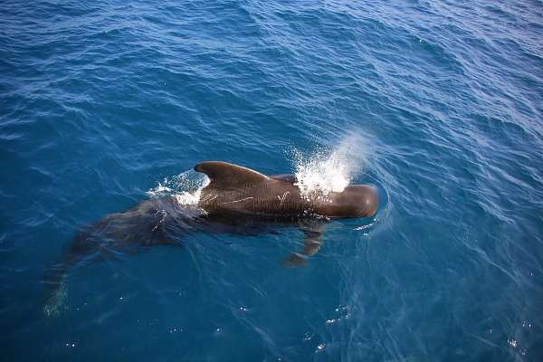 さらにその沖では巨大なゴンドウクジラが群れています!!
