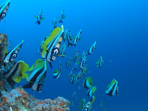 マンタ、タイマイ、ツマジロ、グレーリーフシャーク、インディアンバタフライフィッシュ、ナポレオンフィッシュ、マダラエイ