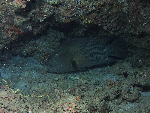 ここのナポレオンはとってもフレンドリー♪穴の中でお休み中のところを発見した後、安全停止中まで何回も姿をだしてくれました。