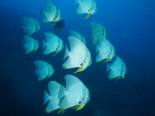 ツバメウオ、ベンガルスナッパー、マダラエイ、グレーリーフシャーク、バラクーダ、ロウニンアジ、ムレハタタテダイ、タイマイ、カスミアジ