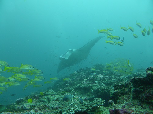 ヨスジフエダイの群れとマンタのコラボレーションは綺麗でした!
