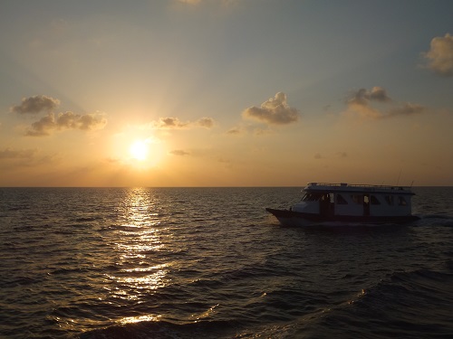 この日は二本でダイビングを終了して、ガーフ環礁を目指して南下!約8時間の船旅で夜にガーフ環礁に到着です!