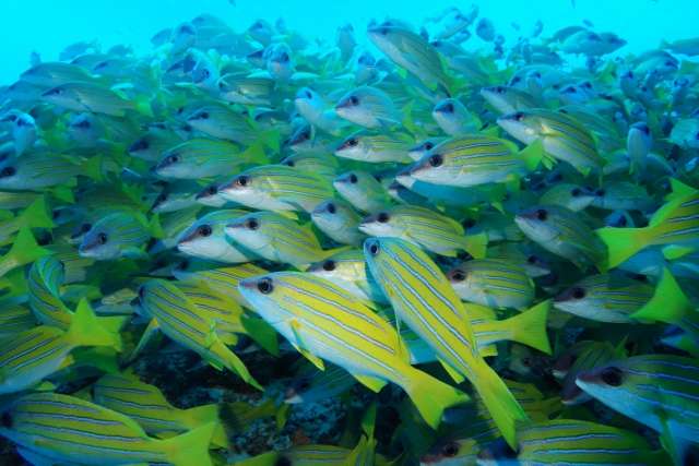 グレーリーフシャーク、ベンガルスナッパー、タイマイ、コガネシマアジ