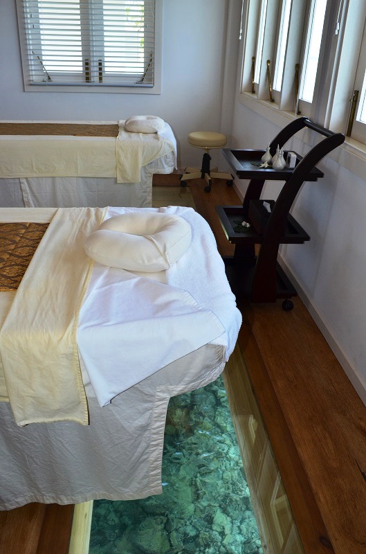 スパは、ビーチと水上に4室づつあります。