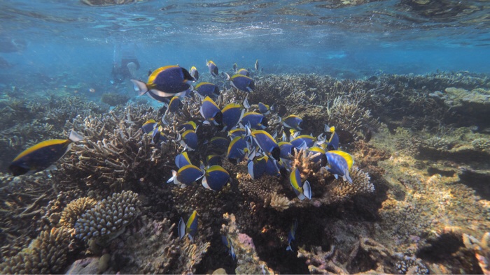 3本目終了後はスノーケルでパウダーブルーサージョンフィッシュの玉探し!