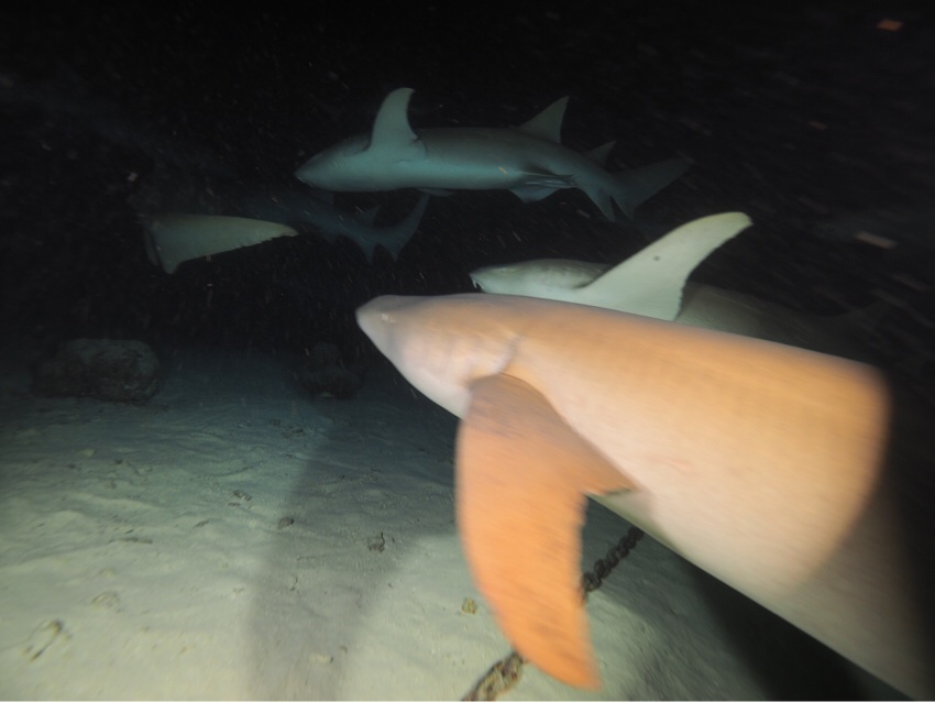 4本目はフェリドゥ環礁に移動してナイトシャーク。この日もナイトシャークはうじゃうじゃいてました。ロウニンアジ、カスミアジはキビナゴの群れに狂ったようにアタックしてました。