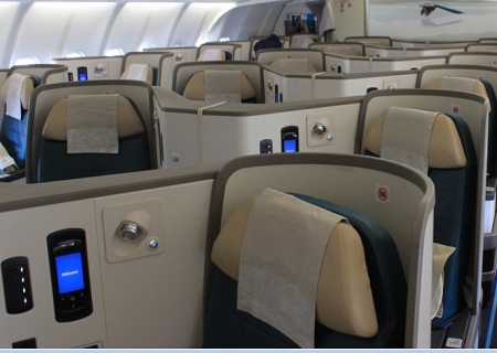 昨年の冬ぐらいから新機材が導入され、ビジネスクラスは1-2-1の配列