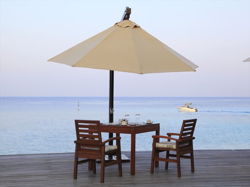ここでは、海やプールを眺めながら、ビュッフェが楽しめます。