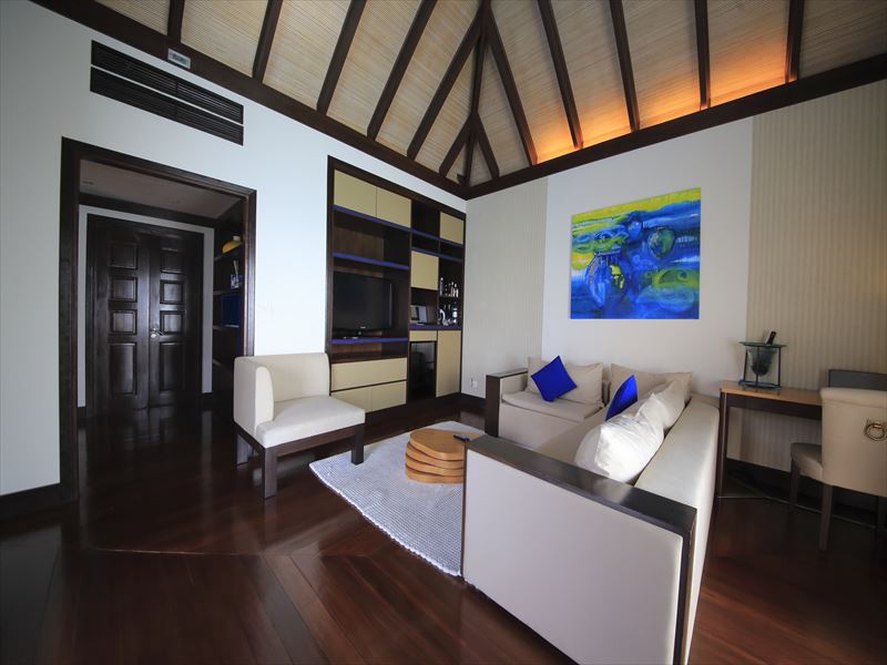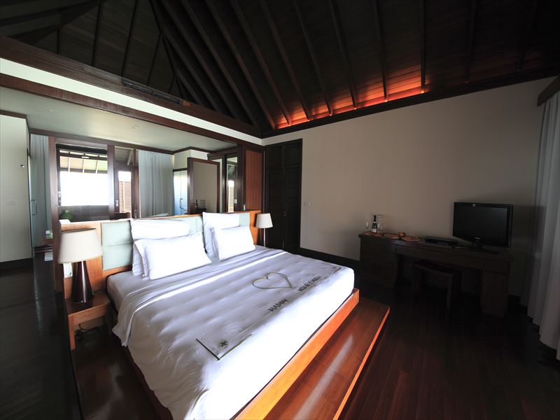 他の水上ヴィラよりも広いテラスにはタイサラ風のデイベッドもあり、海をゆっくりと眺められるんです👌☀