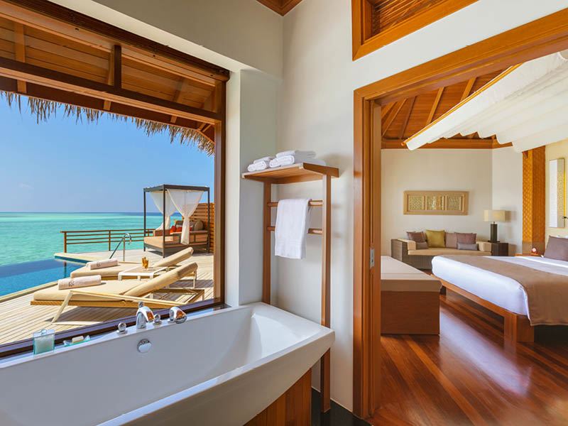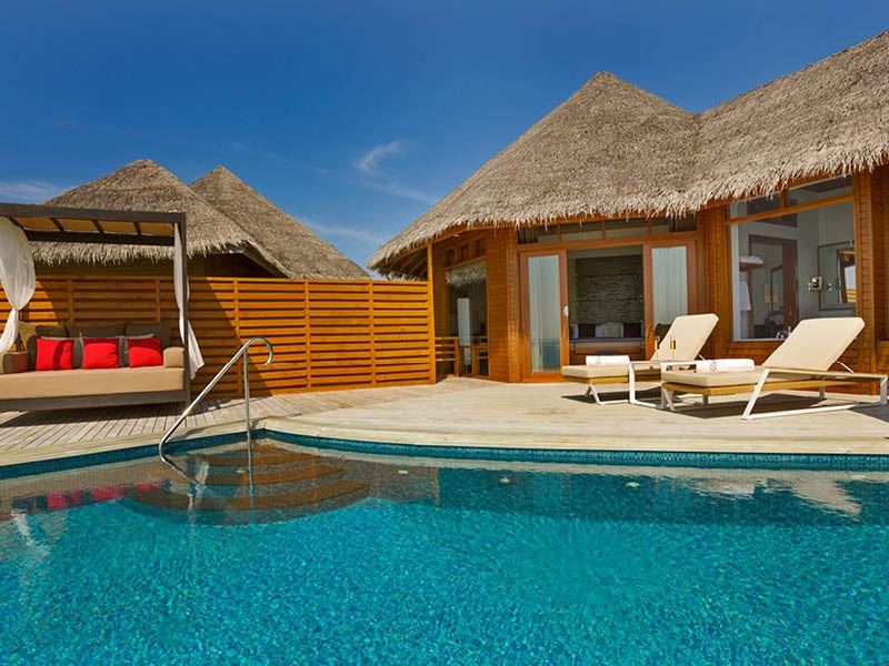 先ほどご紹介した水上ヴィラに、プライベートプールを完備した超豪華な客室😳
