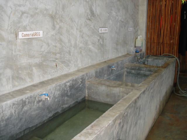 この広々とした器材洗い場にもちょっとした心遣いが。