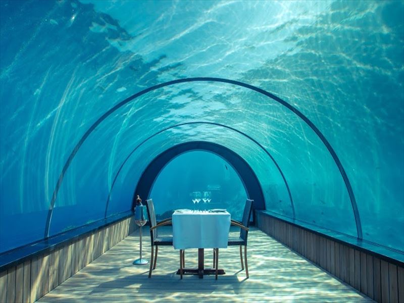 水深5.8mに位置するモルディブ最大の水中レストランなんです!!!!