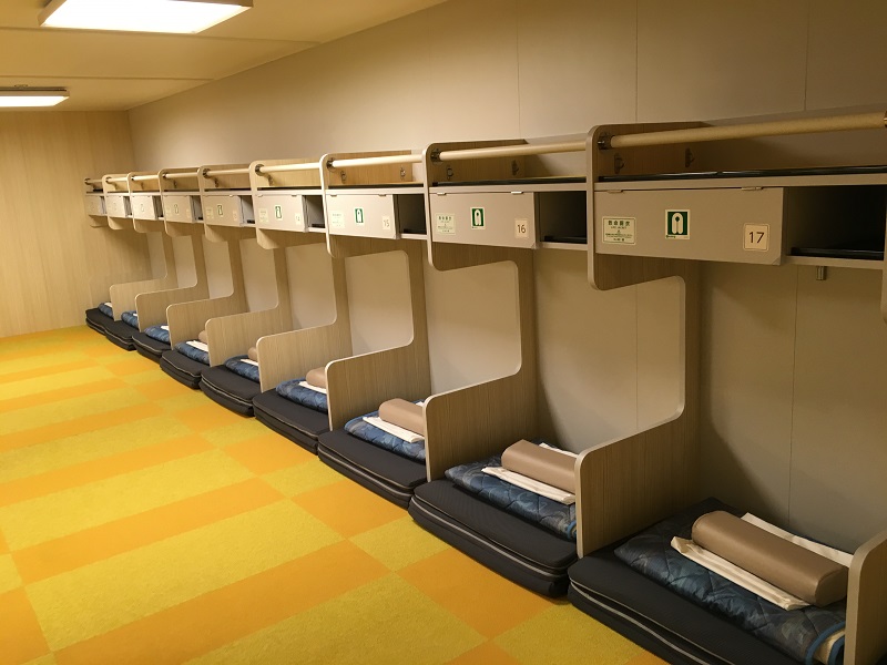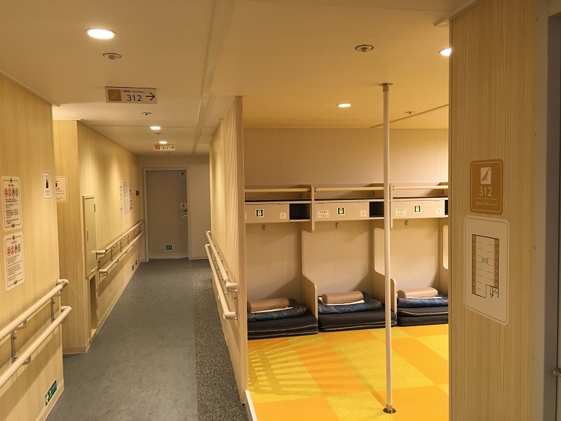 カーペット敷きの広間となっておりますが、現在の小笠原丸の2等船室よりも、一人ひとりのスペースが広くなっており、