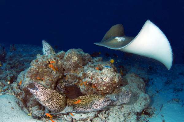 ほかで見かけないほど大きなマダラトビエイもダイバーの間を悠々と泳いでくれました。