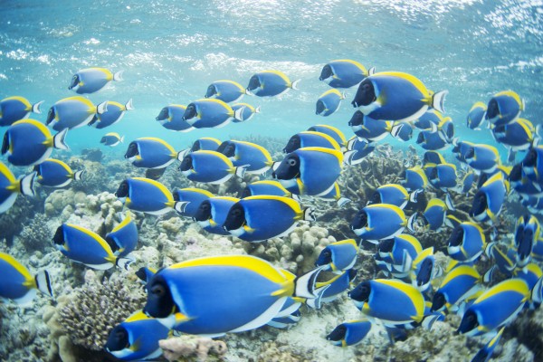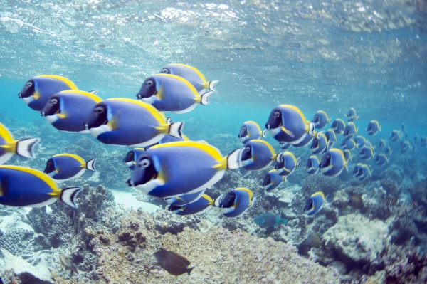 この後、無人島のリーフ沿いスノーケルで、パウダーブルーサージョンフィッシュ玉を見に行きました。
