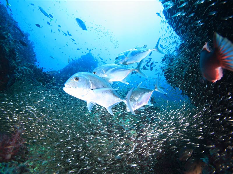 初めてのモアルボアルはジンベエもイワシの群れもサンゴも大満足で予想以上の感動です。