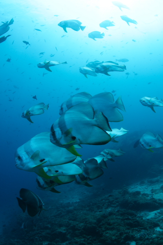 リーフトップには、コラーレバタフライフィッシュ、ムスジコショウダイが群れます。