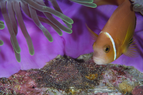 深場のハゼたちと、浅場の固有クマノミのコロニーに癒されます。