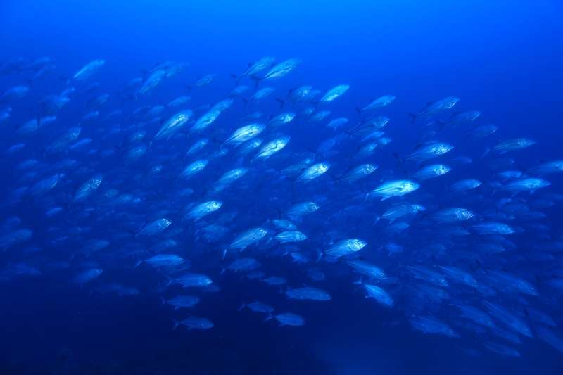 1600m級のドロップオフで、タカサゴ類、ムレハタタテダイ、ツバメウオの群れ、