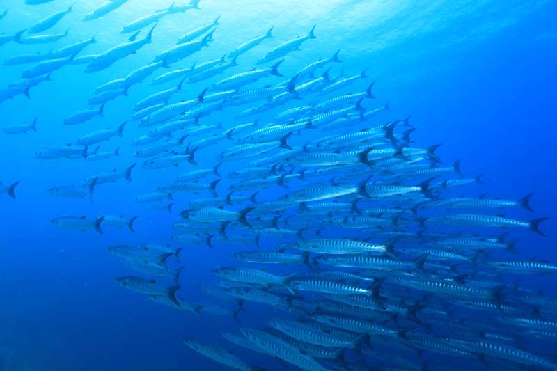 魚影が濃く、バラクーダの群れや巨大ナポレオン、カマスサワラ、