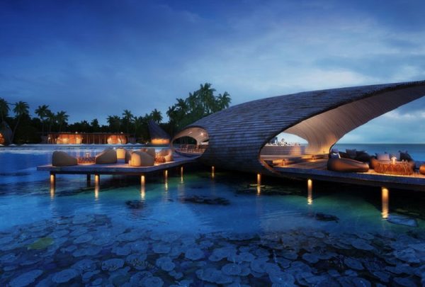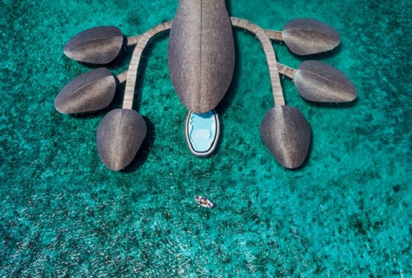 お部屋は一部がモルディブの伝統的な舟、‟ドーニ”を模したものや、スパがある場所は上空から見るとロブスターの形をしています。
