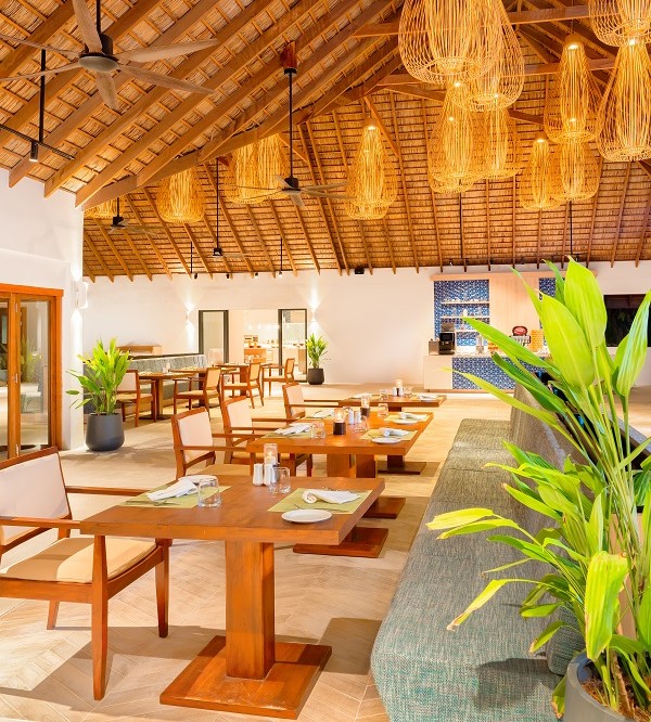 明るくリラックスした雰囲気のレストランで、インド洋の素晴らしい景色を眺めながら食事をお楽しみいただけます。