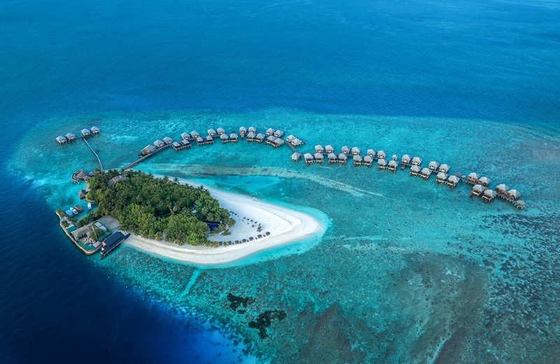 南マーレ環礁に位置し、空港からスピードボートで約15分とアクセスが良いのが魅力の1つ。