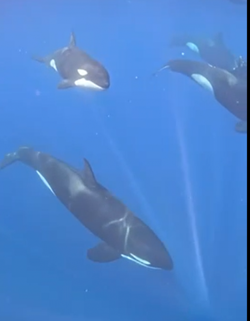 タイミングが合えば、モビュラの大群とオルカが同じ海域にいる瞬間に出会えることもあります。