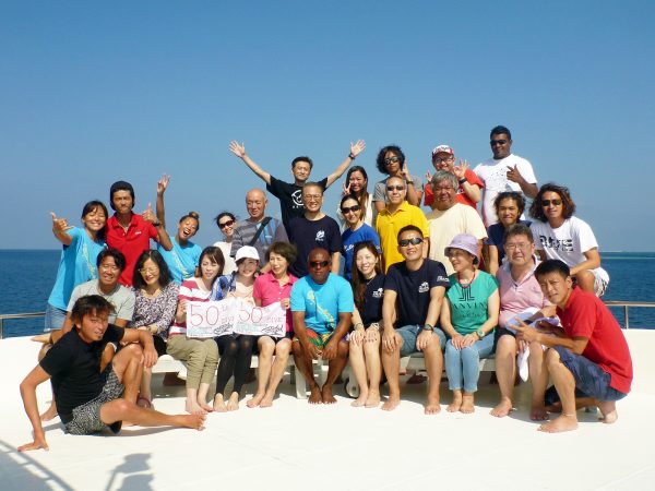 ついに“ダイブラディーク”さんが下船する日になってしまいました。なので、青空の下で集合写真を!!